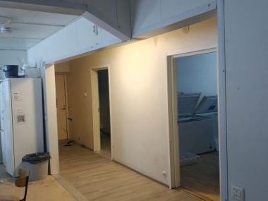 Viimeiseksi tehtiin inva-wc ja uusittiin keittiön lattia ja kaapistot